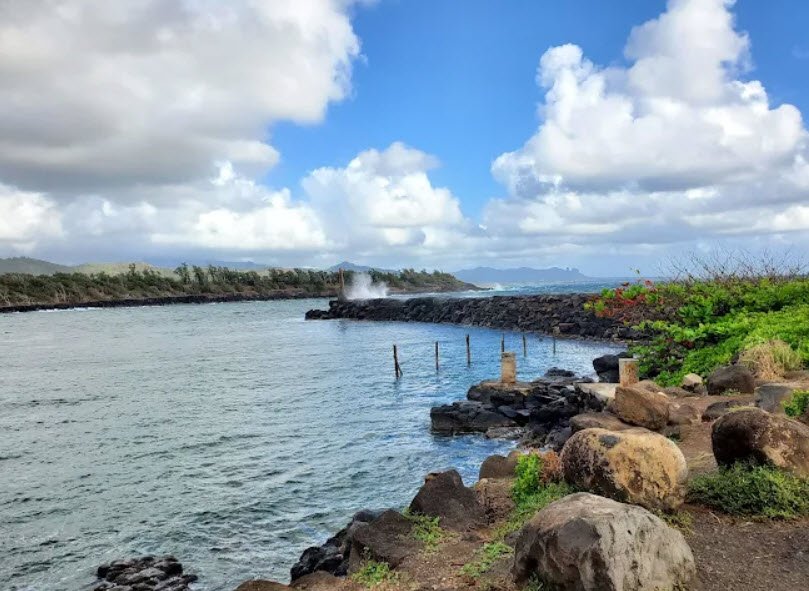 Popular among locals for pole fishing and crab netting in scenic Hanamaʻulu Bay—a State Fishery Management Area with strict no-spearfishing rules—it offers unobstructed water views, picnicking amid grassy areas, and a serene spot for relaxation without entrance fees or facilities like restrooms.