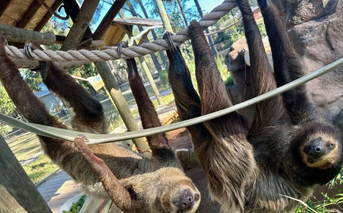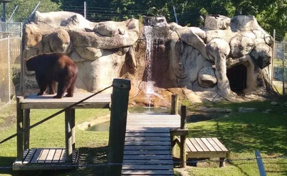 The Alabama Gulf Coast Zoo in Gulf Shores, Alabama, spans about 25 acres and is home to over 300 animals, including giraffes, lions, tigers, lemurs, kangaroos, wolves, bears, reptiles, and various exotic birds.