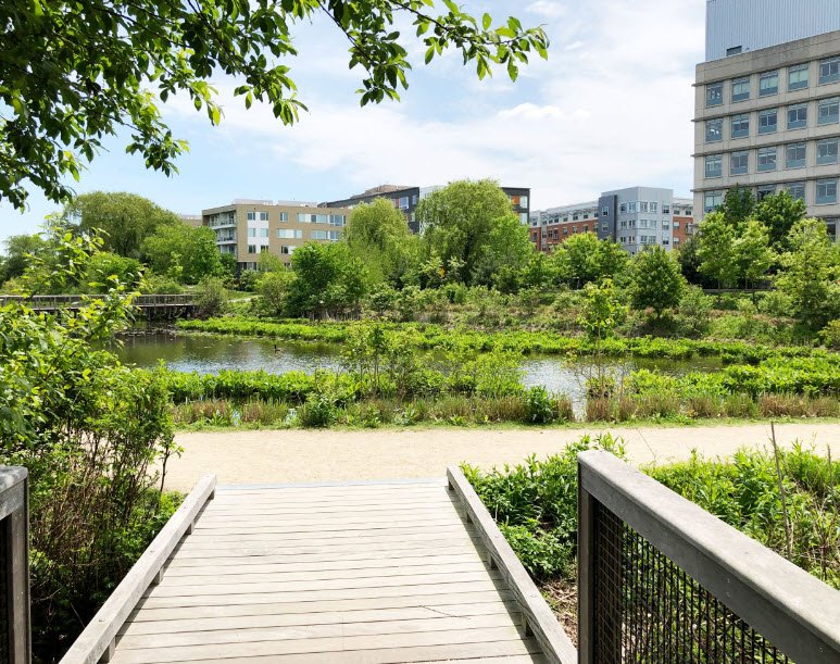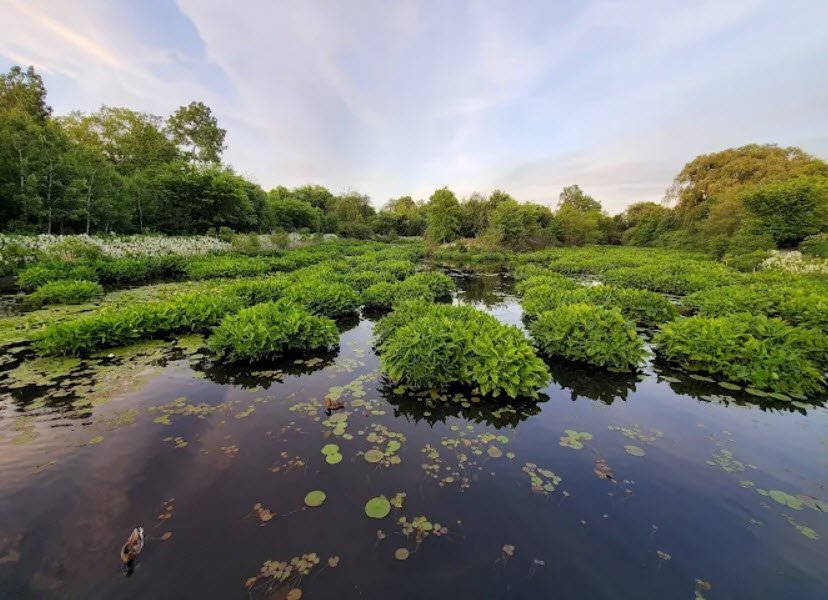 Alewife Brook Reservation is a state-managed urban wild in Cambridge, Arlington, and Somerville, Massachusetts, centered on the meandering Alewife Brook, a tributary of the Mystic River. Established in 1900 as part of Boston's early Metropolitan Park District and designed by Charles Eliot with Olmsted Brothers landscaping, its 136 acres blend expansive wetlands like Little River and Little Pond with wooded uplands and meadows, serving as vital habitat for osprey, great blue herons, woodcocks, and migratory birds. Accessible near Alewife MBTA Station with trails like the Alewife Greenway and Minuteman Bikeway, it supports walking, biking, birdwatching, and ongoing restoration to filter urban stormwater while combating flooding.