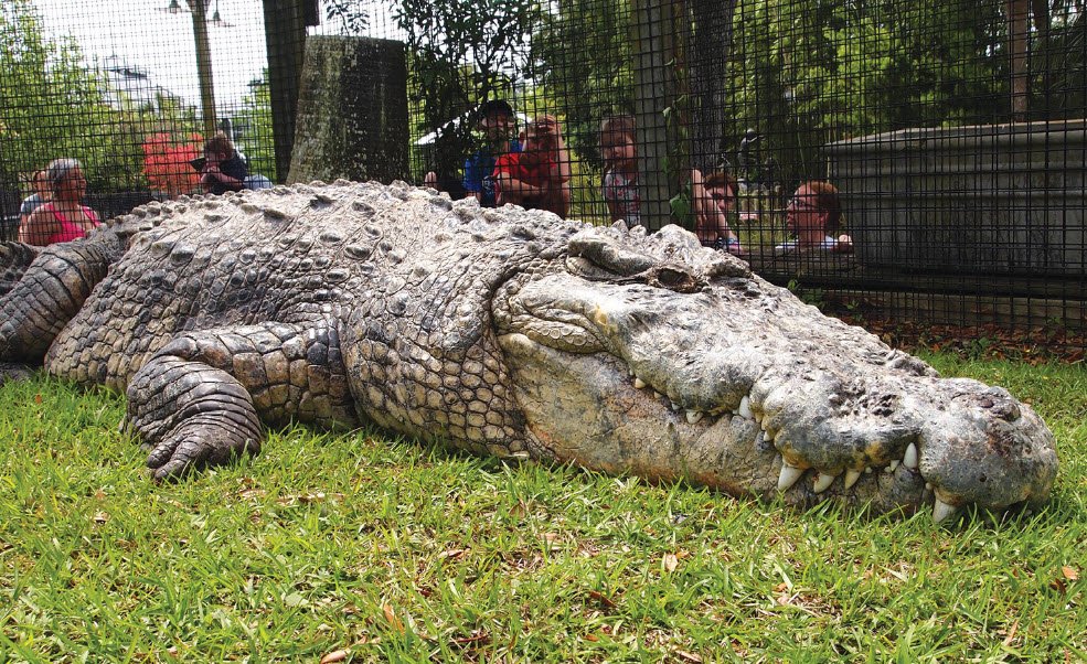 Alligator Adventure in North Myrtle Beach, South Carolina, is one of the world's largest reptile parks, offering visitors the chance to encounter over 700 alligators and other exotic animals such as crocodiles, caimans, snakes, lemurs, and birds across its 15-acre natural swamp and marsh environment.