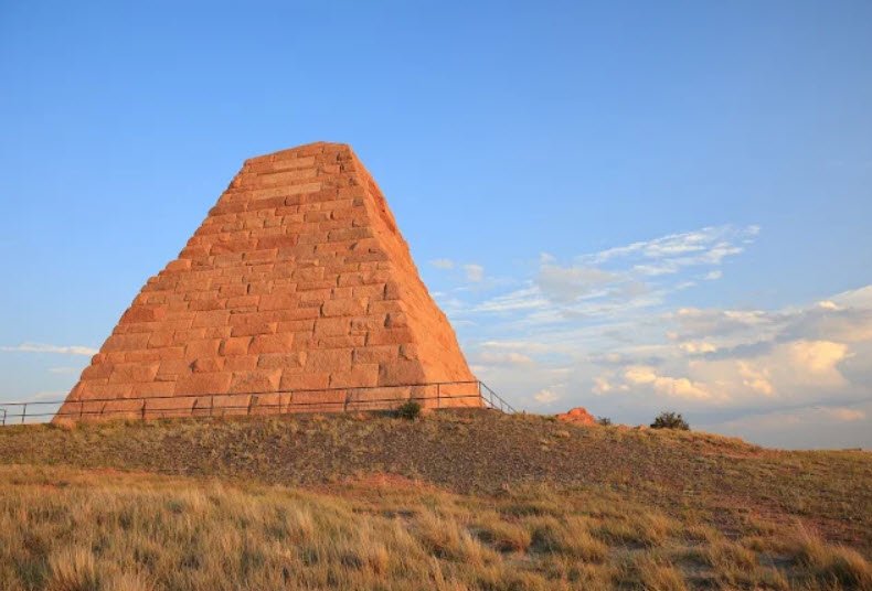 Ames Monument State Historic Site is a striking 60-foot-high granite pyramid located 20 miles east of Laramie in Albany County, Wyoming, at the summit of Interstate 80's Vedauwoo exit, marking the original highest point (8,247 feet) on the 1869 Transcontinental Railroad. Completed in 1882 for $65,000 by the Union Pacific Railroad, the Richardsonian-style structure designed by Henry Hobson Richardson honors Massachusetts brothers Oakes and Oliver Ames Jr., whose financing and influence were pivotal to the railroad's construction despite Oakes' involvement in the Crédit Mobilier scandal. Featuring weathered bas-relief portraits by Augustus Saint-Gaudens, it stands near the site of the abandoned rail town Sherman and is listed on the National Register of Historic Places, open year-round with picnic areas and interpretive signs but no facilities.
