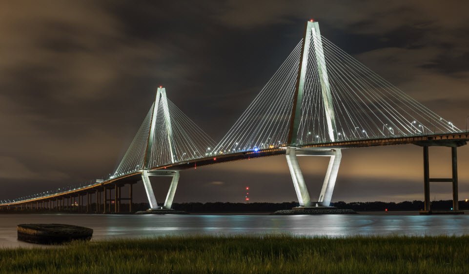 It has eight lanes that accommodate up to 100,000 vehicles daily and includes a dedicated pedestrian and bicycle path called Wonders’ Way. The bridge has become a beloved icon of Charleston’s skyline and an important transportation link supporting the region’s growth and modern shipping requirements.
