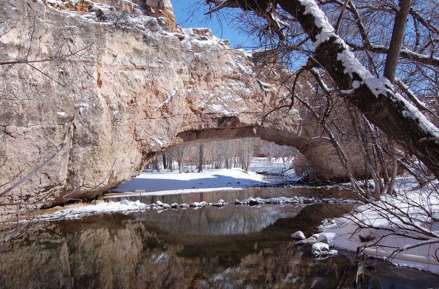 Covering around 150 acres, the park centers on a striking sandstone arch formed by LaPrele Creek over millions of years, making it one of only a few natural bridges in the United States with a stream flowing beneath it.