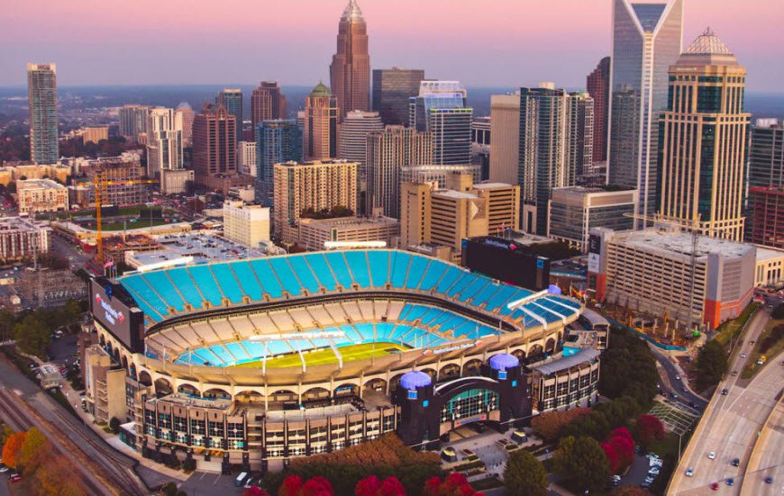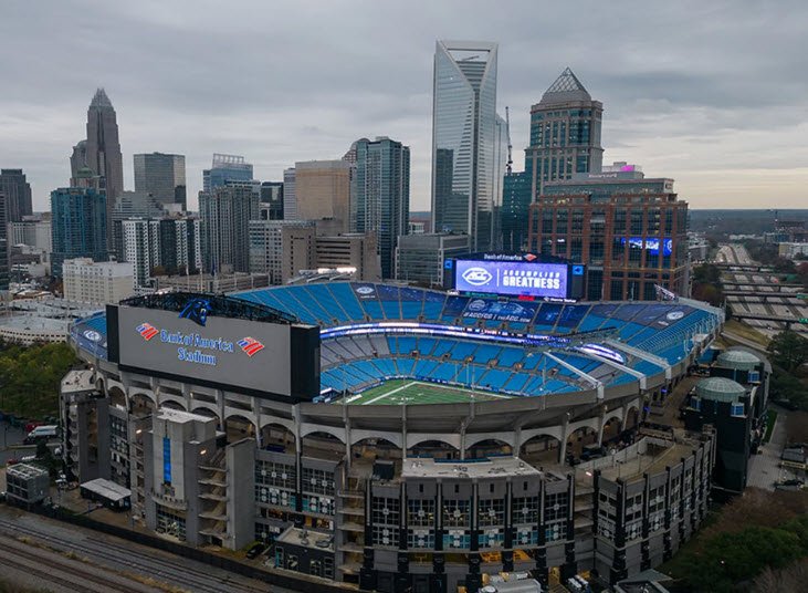 Bank of America Stadium in Charlotte, North Carolina, is a multi-purpose, open-air stadium with a seating capacity of about 75,000.
