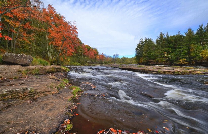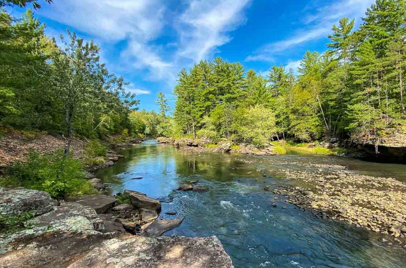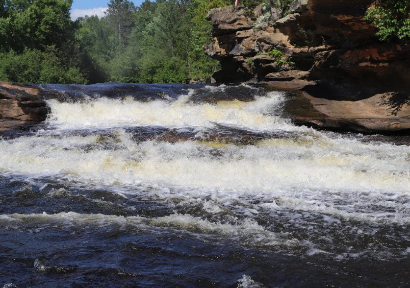 Banning State Park in east-central Minnesota near Sandstone stretches along 10 miles of the Kettle River, Minnesota's first designated Wild and Scenic River, featuring dramatic sandstone cliffs, massive glacial potholes, churning Class IV rapids like Hell's Gate and Blueberry Slide, and historic quarry remnants from the late 1800s.