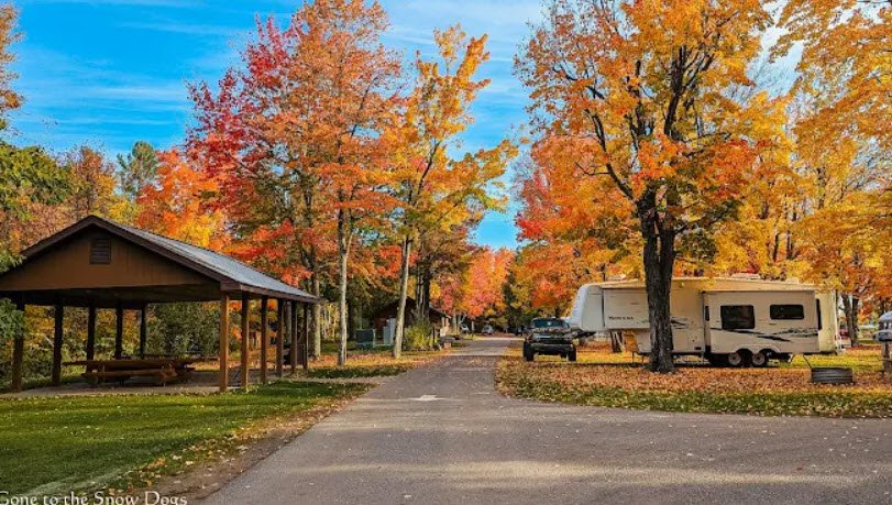 Managed year-round by the Michigan DNR at 1300 US-41 South, it includes flush toilets, showers, sanitation station, playground, WiFi, a mini-cabin sleeping four, and one tepee rental, popular for ORV access to nearby trails linking to Twin Lakes, Bewabic, and Bond Falls.