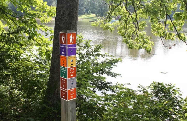 It offers boating, fishing for bass and catfish, swimming at a beach, hiking trails, camping, cabins, picnicking, an archery range, and access to multi-use paths for biking and horseback riding. Wildlife viewing highlights include birds, turtles, deer, and occasional bears, with lake access requiring a permit, license, or membership.