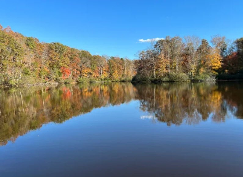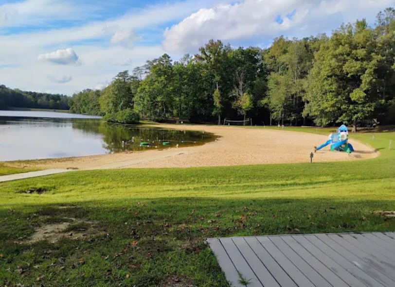 Bear Creek Lake State Park is a 326-acre park in Cumberland, Virginia, nestled within the vast 16,000-acre Cumberland State Forest, featuring a central 40-acre manmade lake built in 1938 by the Civilian Conservation Corps.