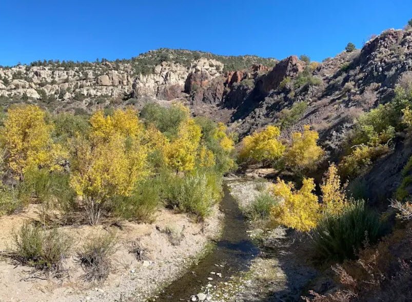 The park sits at around 5,000–5,400 feet elevation in rugged canyon country with perennial streams, small waterfalls, and a handful of actual beaver‑built dams, set amid pinyon, juniper, and ponderosa pine forests, and dramatic volcanic and sedimentary rock formations.