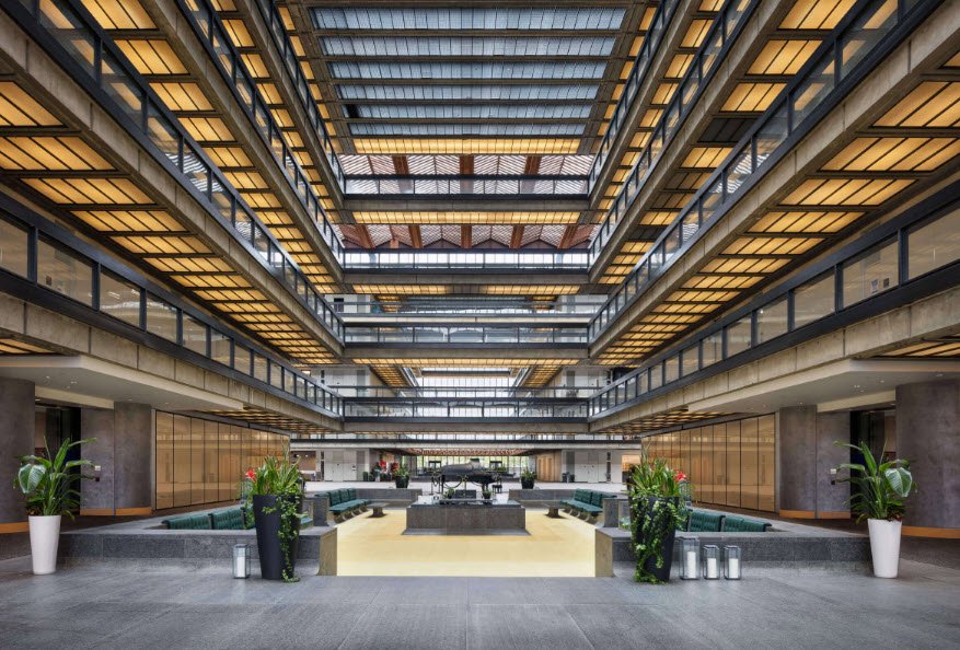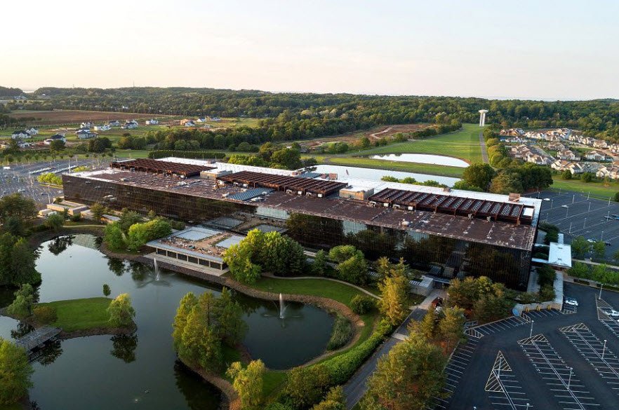 Once home to thousands of researchers from Bell Telephone, AT&T, Lucent, and Alcatel-Lucent until 2006, the mirrored glass structure sat largely vacant before Somerset Development transformed it starting in 2013 into a vibrant "metroburb"—a metropolis in suburbia blending offices, retail shops, dining, healthcare, a library, and event spaces like the Bell Theater.