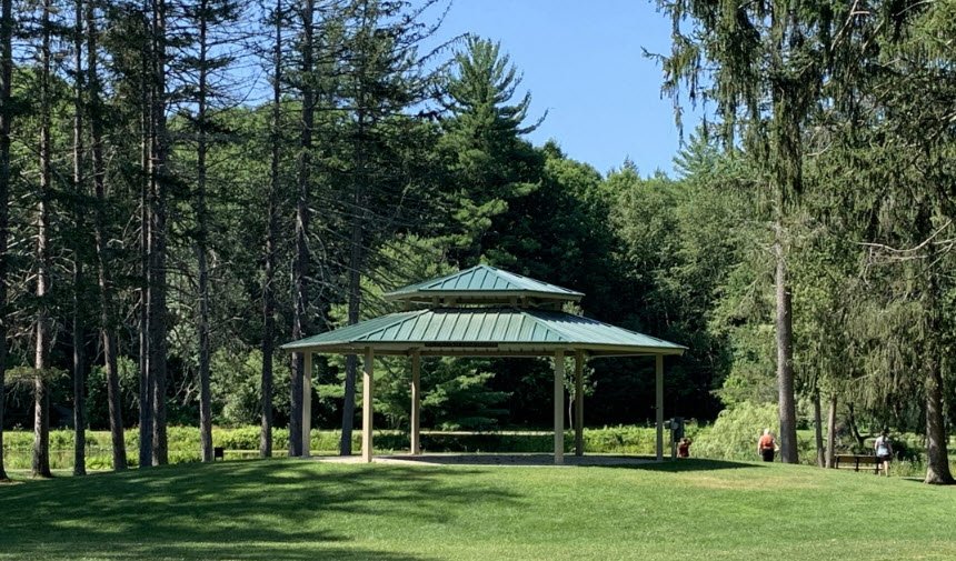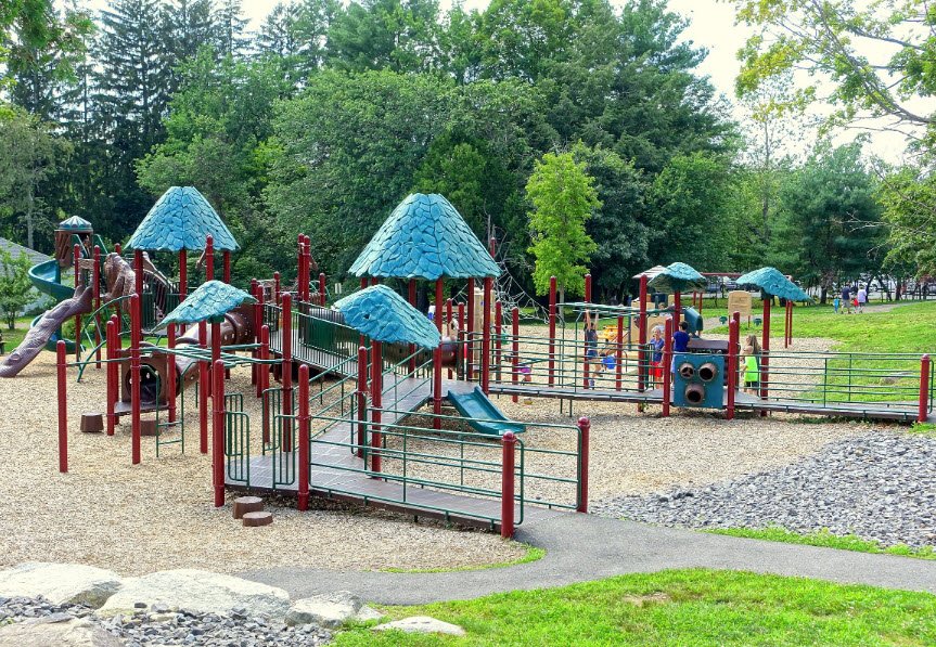 Now maintained by the town with volunteer help from Friends of Benson Park, it offers over four miles of groomed paved and natural hiking trails for all skill levels, a stocked pond for fishing or RC boats, picnic areas, playgrounds, and remnants like the Elephant Barn gift shop, Gorilla House, and Old Woman's Shoe for exploring quirky history.