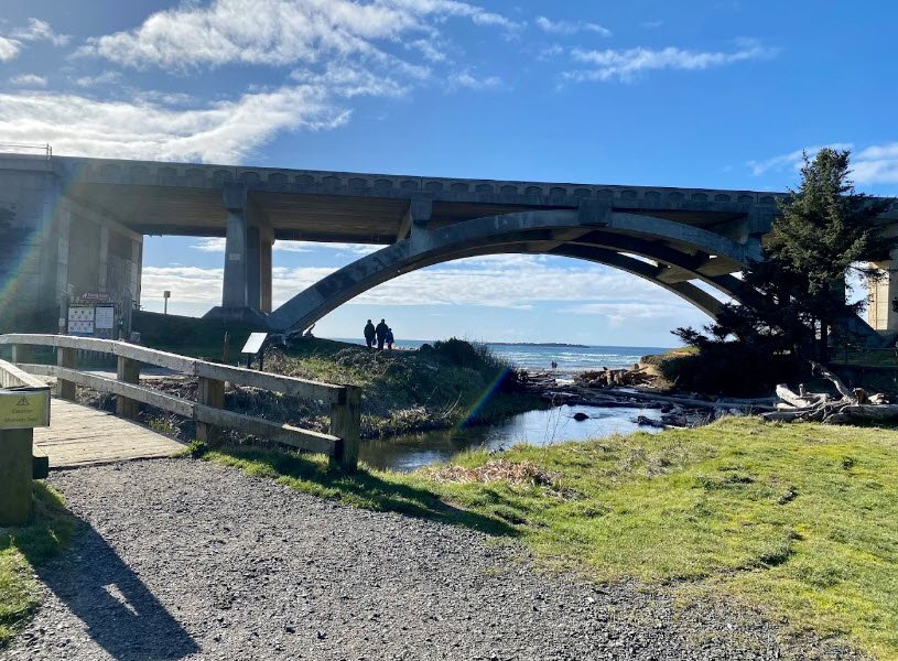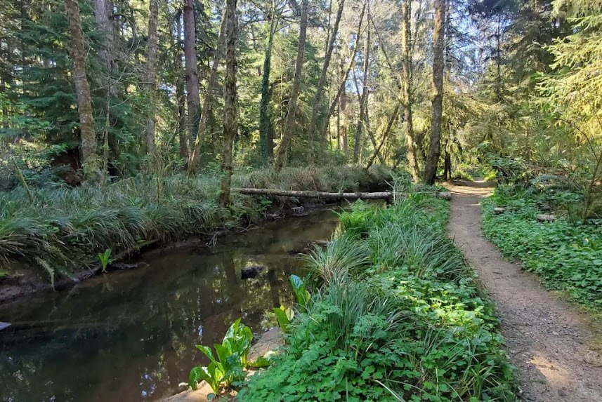 Beverly Beach State Park is a 356-acre coastal park nestled in a forest between Cape Foulweather and Yaquina Head in Lincoln County, Oregon, USA, featuring one of the state's largest creekside campgrounds along Spencer Creek with direct access to miles of sandy ocean beach stretching toward Otter Rock.