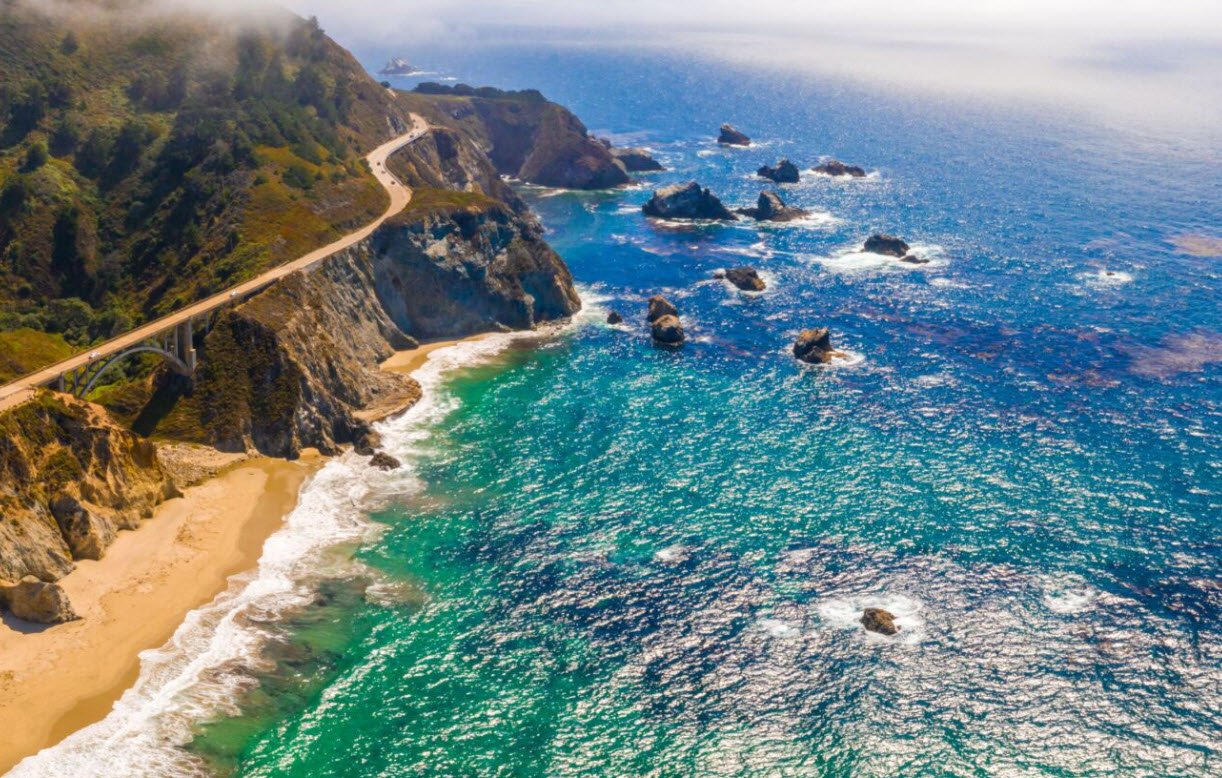 Known for its dramatic landscapes, Big Sur features the Santa Lucia Mountains rising sharply from the Pacific Ocean, creating one of the most scenic and undeveloped coastlines in the contiguous United States. The area is famous for its natural beauty, including towering redwoods, coastal cliffs, pristine beaches, and waterfalls such as McWay Falls.