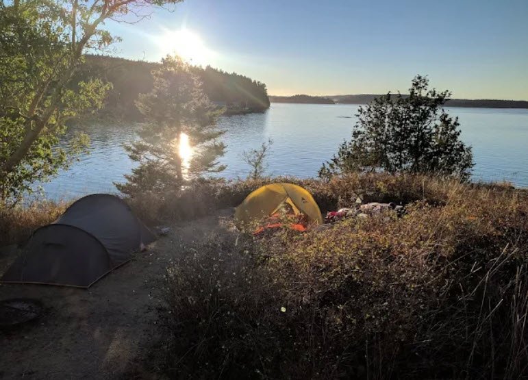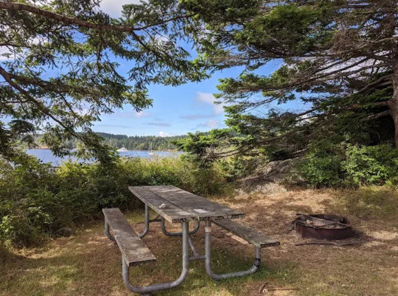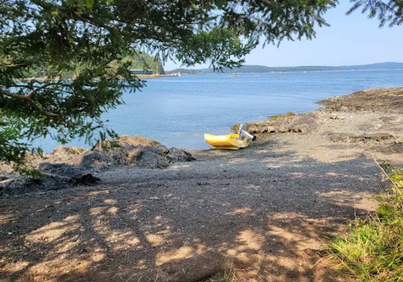 Accessible only by boat with four year-round moorage buoys, it offers four primitive campsites reserved exclusively for non-motorized watercraft like kayaks via the Cascadia Marine Trail, a composting toilet, picnic areas, and rocky 1,280 feet of shoreline for wildlife viewing and crabbing, with no potable water available.