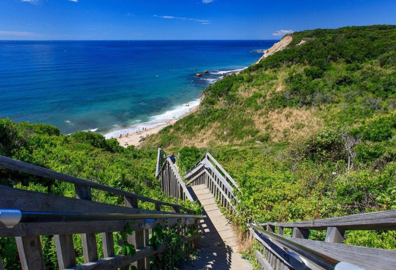 The island was named after Dutch explorer Adriaen Block, who charted it in 1614, and was originally inhabited by the Native American Niantic tribe, who called it “Manisses” meaning “Island of the Little God.” Formed by glaciers at the end of the last Ice Age, the island features rolling hills, scenic clay cliffs known as the Mohegan Bluffs, over 27 kilometers of pristine beaches, dozens of freshwater ponds, and miles of walking trails.