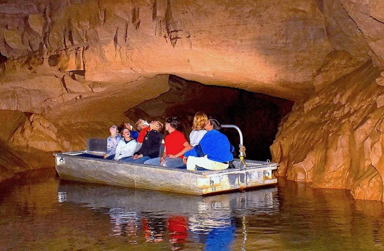Visitors explore the caverns on guided boat tours that travel through over a mile of underground passages illuminated softly by boat lights, allowing them to experience the natural beauty and geology of the cave. The caverns maintain a constant cool temperature around 53-54 degrees Fahrenheit year-round.