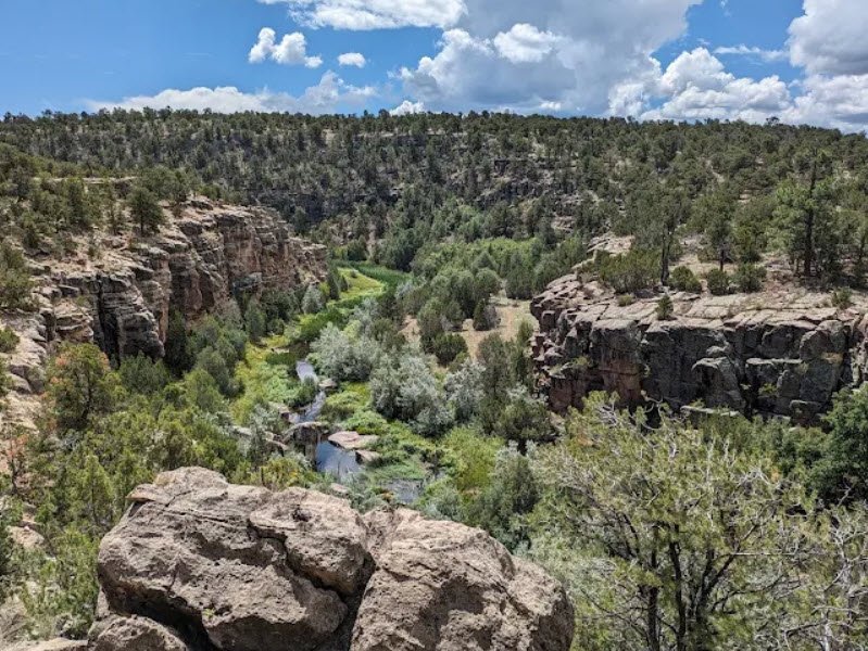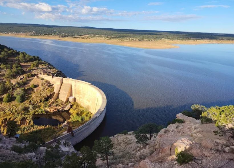 Formed by a historic 1920s arched dam on Bluewater and Cottonwood Creeks amid piñon-juniper woodlands, its 1,500-acre lake excels in tiger muskie, rainbow trout, and channel catfish fishing, plus boating, kayaking, sailing, water skiing, and winter ice fishing.