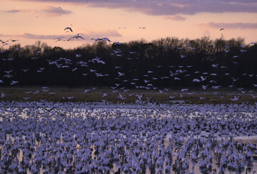 Bombay Hook National Wildlife Refuge in Delaware is a 16,000-acre protected area along the Delaware Bay that serves primarily as a refuge and breeding ground for migratory and wintering waterfowl along the Atlantic Flyway.