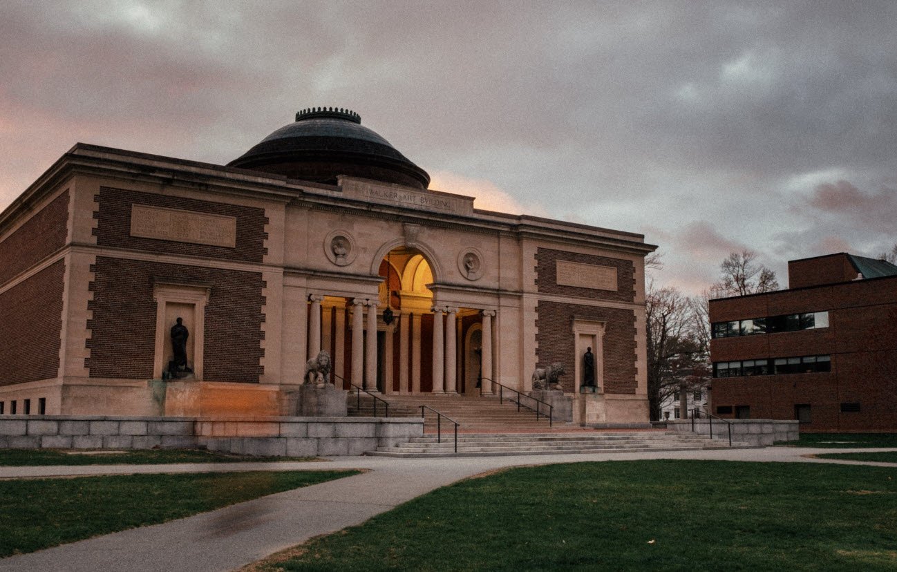 The museum is housed in the historic Walker Art Building, designed by Charles Follen McKim and completed in 1894, featuring Renaissance Revival architecture and distinctive elements like large murals symbolizing major artistic cities and Medici lions at the entrance. Its collection encompasses more than 30,000 objects, including significant holdings in antiquities such as Assyrian, Egyptian, Greek, Roman, Byzantine, and Chinese artifacts, as well as extensive European, American, Asian, and contemporary art.