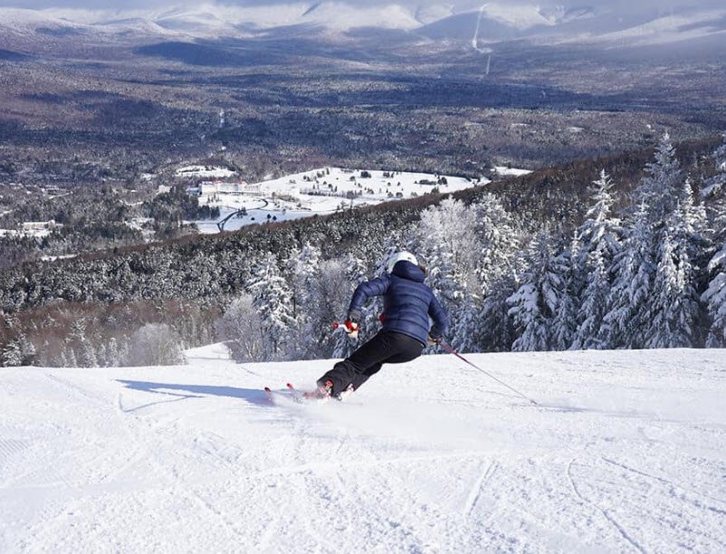Bretton Woods in New Hampshire is the state's largest ski area with 464 acres across 63 trails and 36 glades, offering a 1,500-foot vertical drop serviced by 10 lifts including an 8-passenger Skyway Gondola and four high-speed quads, renowned for award-winning grooming, 92% snowmaking, and over 200 inches of annual natural snowfall.