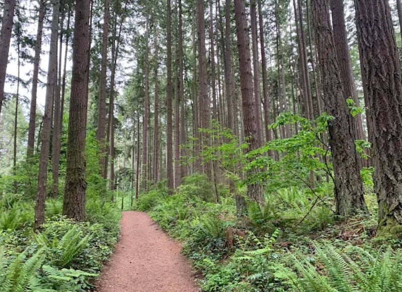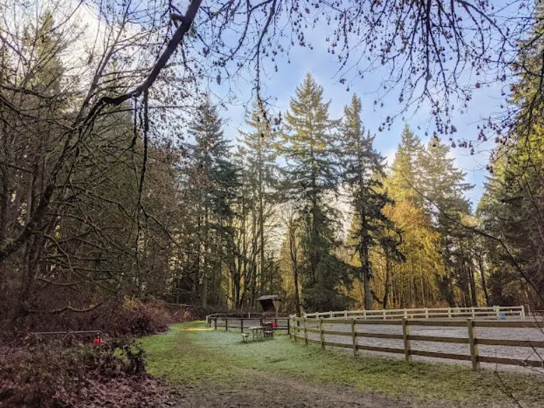 Established in 1932 amid a lowland conifer forest of Douglas firs, western hemlocks, ferns, and diverse wildlife including birds and small mammals, it features three marked loop trails ranging from 1 to 3.5 miles, a 2.13-mile Bridle Crest Trail connecting to Marymoor Park, four outdoor equestrian arenas for shows, picnic areas, restrooms, and a large parking lot requiring a Discover Pass. Dogs must be leashed to avoid startling horses, making it family- and kid-friendly with minimal elevation gain.
