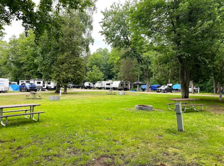 Visitors enjoy fishing in nearby bays and trout streams, hiking and skiing trails, playgrounds, and proximity to Hiawatha National Forest, Soo Locks, and Tahquamenon Falls, with grassy sites ideal for families year-round.