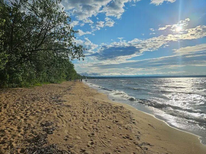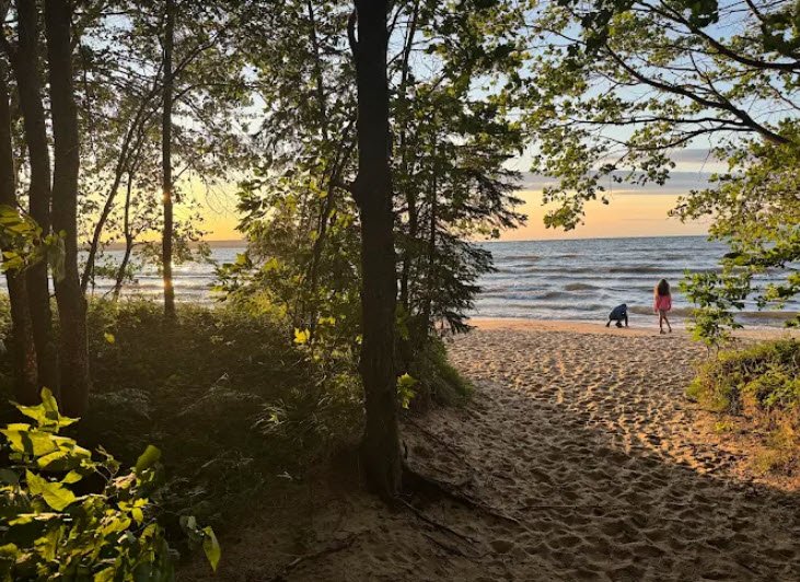 Established in 1923 after the Village of Brimley donated initial land to the Michigan DNR—one of the Upper Peninsula's oldest state parks—it offers camping, overnight lodging, a boat launch, sandy swimming beach known for warm waters, picnic areas with shelter, and an observation platform for viewing freighters and Canada across the bay.