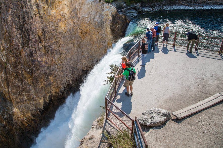 Accessed by a short but steep 0.4-mile trail descending about 600 feet with 10 switchbacks, visitors reach a platform right at the top edge of the falls where they can see the powerful water plunging into the narrow canyon below. The site provides stunning views of the Yellowstone River rushing toward the falls and carving through the Grand Canyon of the Yellowstone.