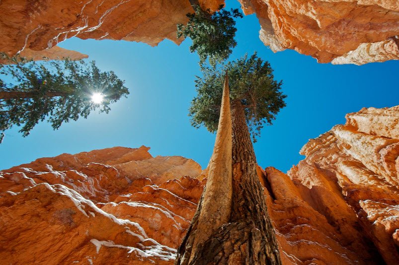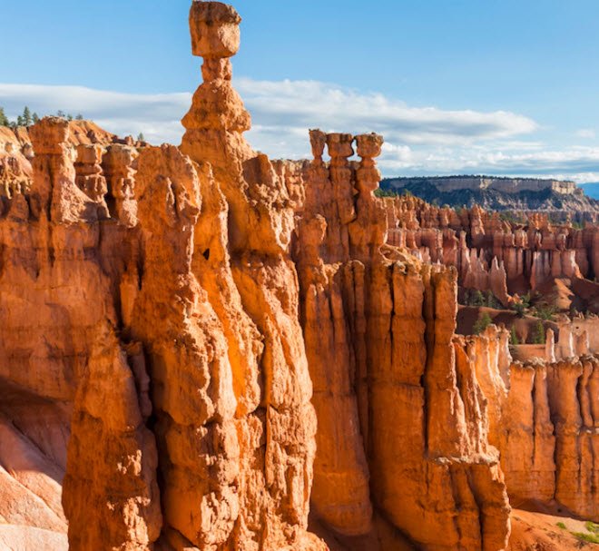 Bryce Canyon in southern Utah is famous for its extraordinary geological formations called hoodoos, which are tall, thin spires of rock created through millions of years of erosion by frost weathering and water.