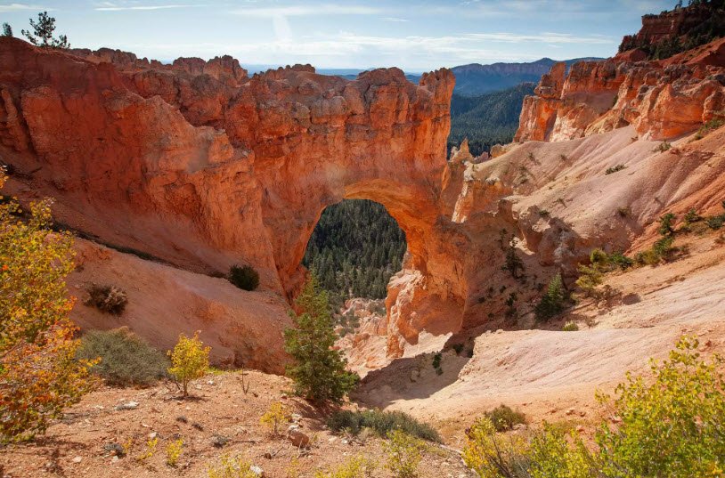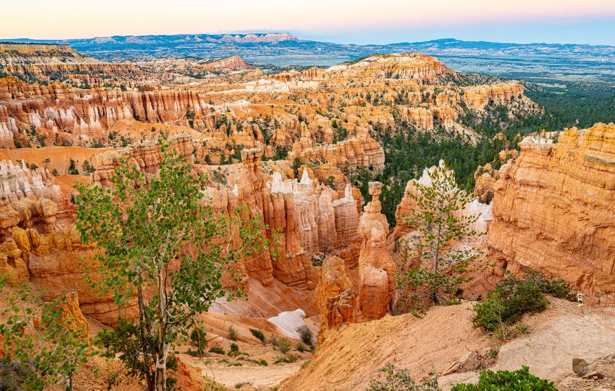 The park occupies part of the Paunsaugunt Plateau and offers elevations ranging from about 6,600 to over 9,100 feet, providing diverse ecosystems from pine forests to high desert. Visitors can enjoy panoramic views from points like Rainbow Point and hike popular trails such as the Navajo Loop and Fairyland Loop to experience the vibrant rock formations up close.