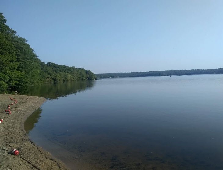 Burlingame State Park spans 3,100 acres in Charlestown, Rhode Island, centered around Watchaug Pond, one of the state's largest freshwater bodies.