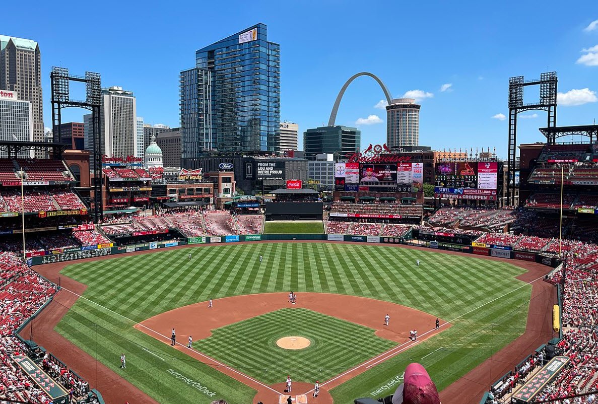 Busch Stadium in St. Louis, Missouri, is the home ballpark of Major League Baseball’s St. Louis Cardinals.