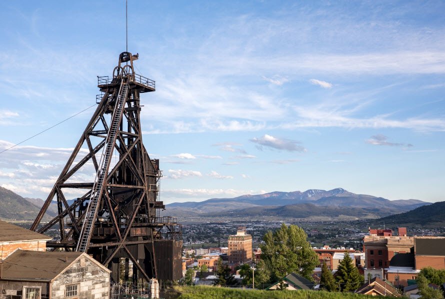 Butte, Montana, began in the 1860s as a gold and silver mining camp in the northern Rocky Mountains near the Continental Divide.