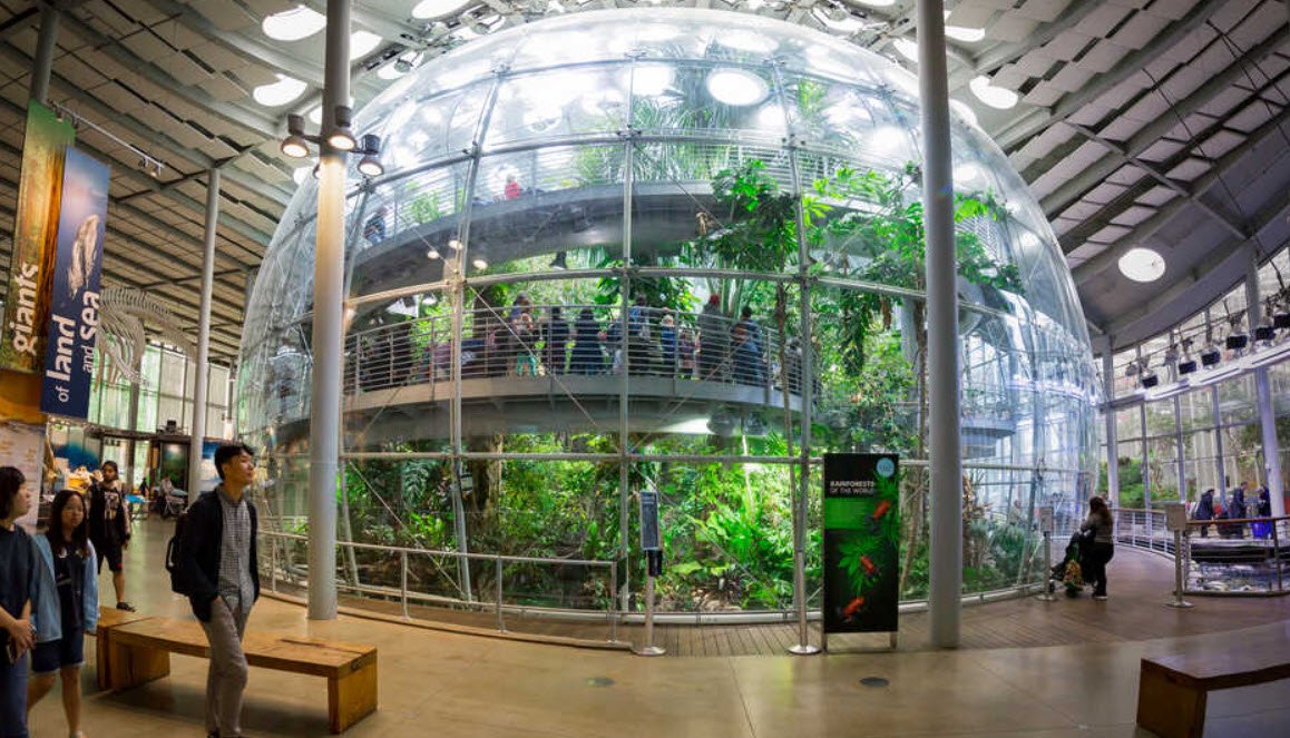 Founded in 1853, it is among the largest museums of natural history worldwide, housing over 46 million specimens. The current building, redesigned and rebuilt in 2008 by architect Renzo Piano, features a sustainable living roof with native plants and natural cooling systems. Under one roof, visitors can explore a vibrant aquarium with thousands of marine animals, a four-story rainforest dome teeming with exotic plants and animals, a state-of-the-art planetarium, and a natural history museum with extensive exhibits including fossils and a giant blue whale skeleton.