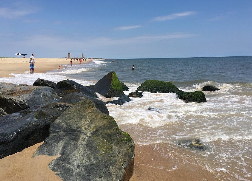 There are two designated swimming areas with lifeguard patrols during the summer, and a modern bathhouse with showers, changing rooms, and a snack bar is available at the northern beach. Popular fishing spots include the year-round fishing pier on Delaware Bay and areas for surf fishing, with permits required for driving on the beach for fishing purposes.