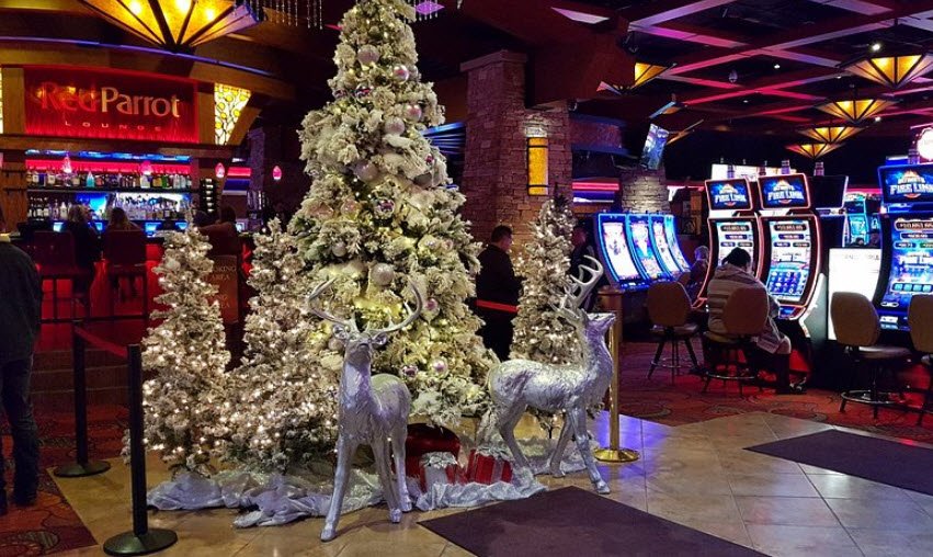 Amenities include three restaurants such as the acclaimed Grove Buffet, the Red Parrot Lounge, and a welcoming "Cheers-like" atmosphere, operating daily for guests 21 and older while supporting tribal employment and community initiatives.