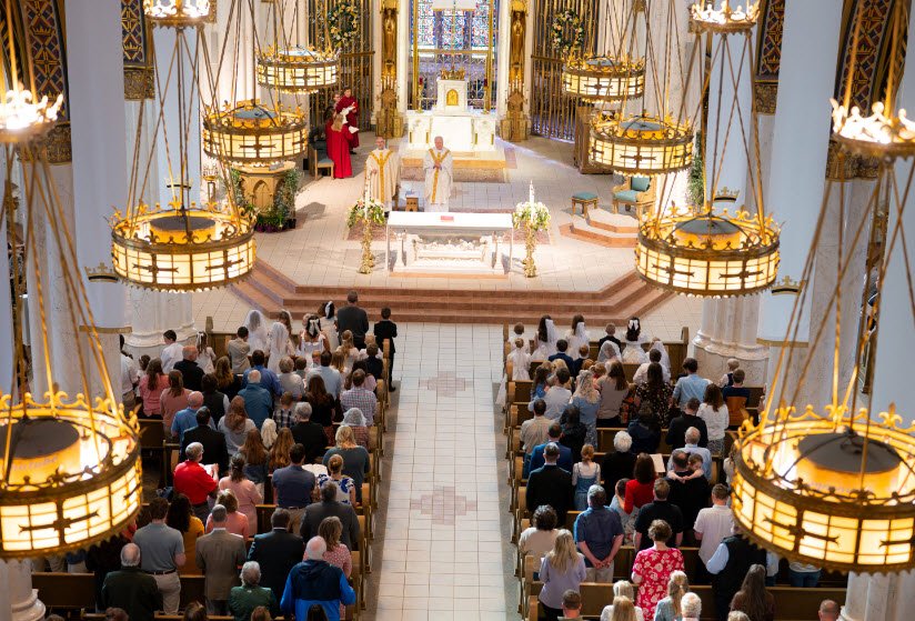 Construction began in 1908 and the first Mass was celebrated in 1914, with the cathedral being consecrated in 1924. It features soaring twin spires reaching 230 feet, hand-carved oak woodwork, white Carrara marble altars, intricate stained glass windows, and hand-forged bronze light fixtures.