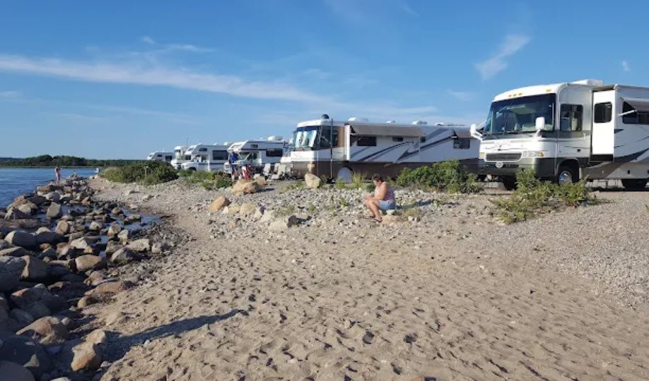 Charlestown Breachway Campground in Charlestown, Rhode Island, offers 75 self-contained RV sites—no tents or pop-ups allowed—with stunning ocean views of Block Island Sound and easy walking access to the adjacent state beach.