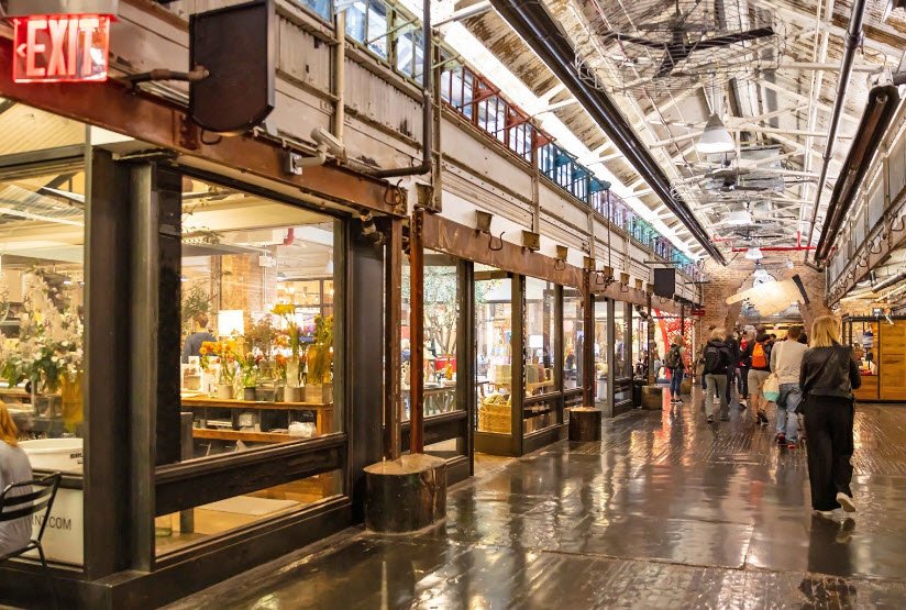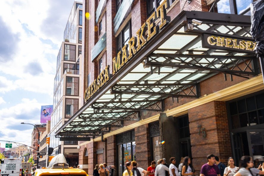 It opened in 1997 featuring global vendors like Lobster Place, Amy's Bread, and Fat Witch Bakery alongside boutiques, drawing six million visitors yearly for its preserved architecture, wishing well fountain, and connection to the elevated High Line park. Owned by Alphabet Inc. since 2018 for over $2.4 billion, it blends culinary diversity, media tenants, and urban history in the Gansevoort Market Historic District.