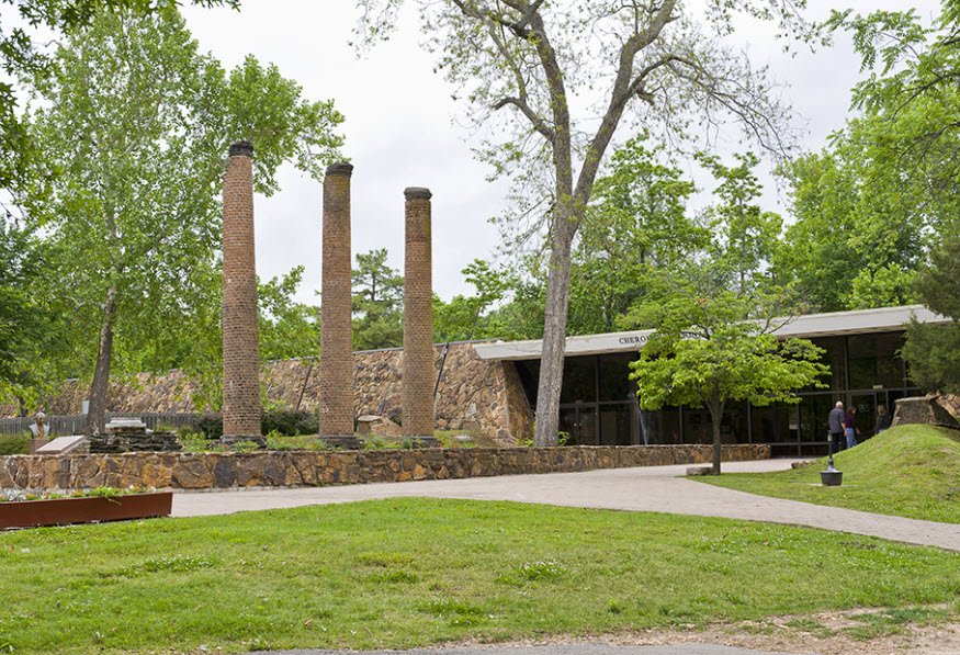 The Cherokee Heritage Center in Park Hill, Oklahoma, near Tahlequah, preserves Cherokee history on the site of the 1851 Cherokee National Female Seminary whose columns remain, established in 1966 by the Cherokee Historical Society to showcase the nation's story through immersive exhibits and living history.
