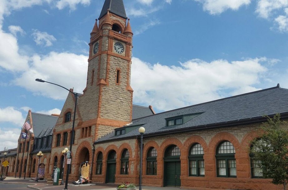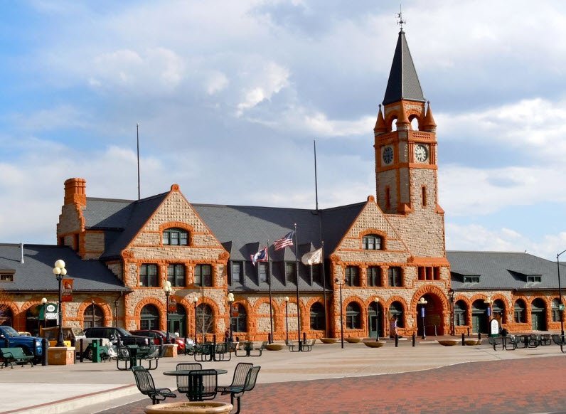 The Cheyenne Depot Museum is housed in the historic Union Pacific Railroad station in Cheyenne, Wyoming, built in 1886 from sandstone quarried in Colorado and expanded in 1922.
