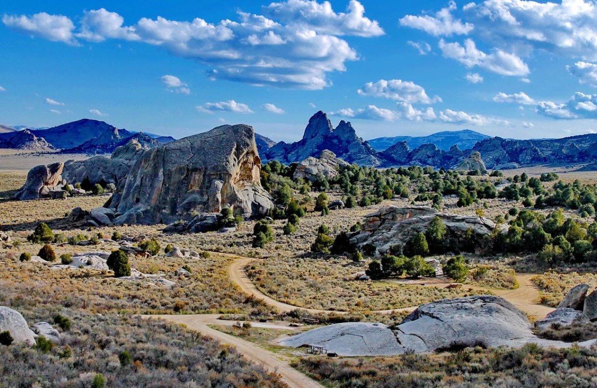 City of Rocks in Idaho is a stunning natural reserve known for its towering granite spires and rock formations shaped by millions of years of geological processes. Located in the Albion Mountains, the area features granite that is both relatively young, about 28 million years old, and ancient rock over 2.5 billion years old, creating striking contrasts.
