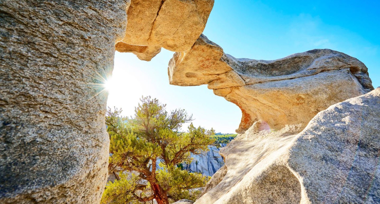 The landscape was formed by crustal stretching and faulting typical of the Basin and Range province, with erosion and weathering—including freeze-thaw cycles—further sculpting the unique rock shapes such as arches, panholes, and tafoni. The granite cliffs rise as high as 600 feet and offer a spectacular setting that attracted early settlers and emigrants along the California Trail.