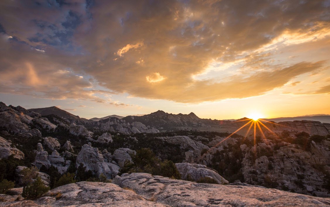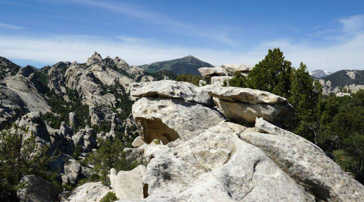 City of Rocks National Reserve in southern Idaho covers about 14,400 acres and is renowned for its dramatic granite rock formations that rise up to 60 stories high, resembling a city skyline.