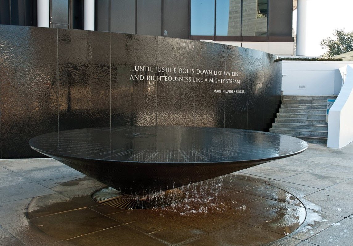 Visitors can touch the water and temporarily alter its surface, which then smooths again, evoking a sense of reflection and renewal. The memorial serves as a reminder of the struggles and sacrifices made in the fight for racial equality and aims to inspire justice for future generations.