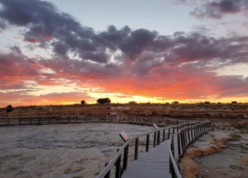 Centered on a man-made reservoir created in 1955 for fishing and waterfowl, it features over 500 preserved dinosaur footprints—among North America's most extensive trackways—from the Late Cretaceous, visible along an elevated interpretive walkway at the dam spillway.