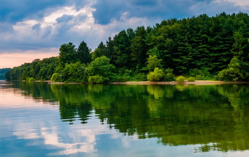 About 3 miles from Hanover off PA Route 216, it serves as a rest stop for migrating waterfowl and offers boating, fishing for warm-water species like bass and catfish, swimming in a pool, disc golf, picnicking, camping, hiking on 19 miles of trails, mountain biking on 195 acres, and winter activities including ice fishing, skating, skiing, sledding, and snowmobiling. The park blends scenic rolling hills, forests, wetlands, and fields for year-round recreation near Gettysburg.