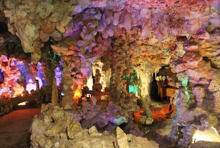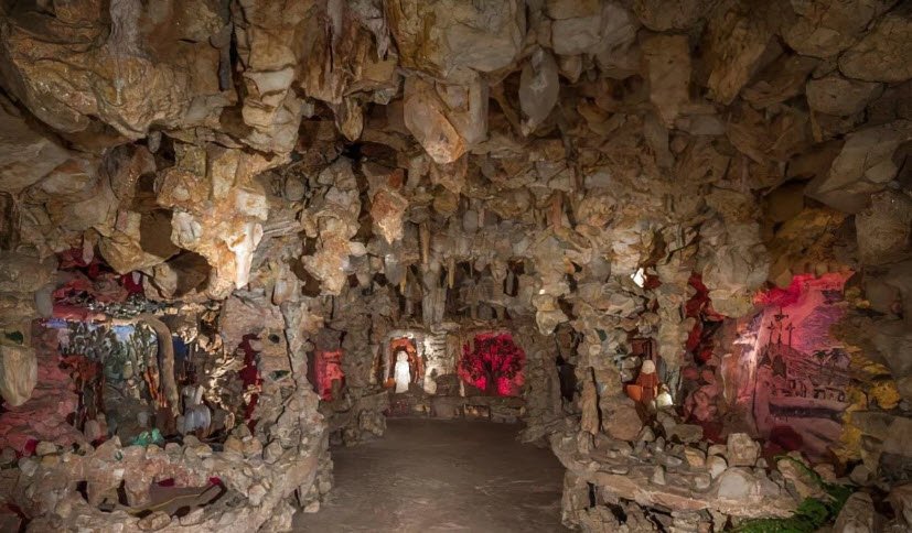 The Crystal Shrine Grotto in Memphis, Tennessee, located within Memorial Park Cemetery, is a unique man-made cave carved nearly 60 feet into the side of a hill.