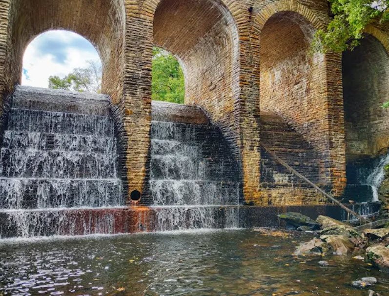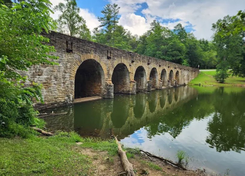 Originally developed by Civilian Conservation Corps workers and homestead families to provide recreation for relocated Depression-era residents, the park opened in 1940 and features historic sandstone structures listed on the National Register, including the iconic seven-arch dam and Mill House Lodge.