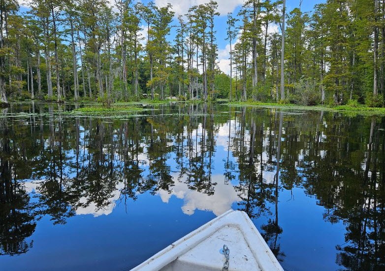 Cypress Gardens in South Carolina is a 170-acre nature reserve and botanical garden located near Moncks Corner, featuring an 80-acre blackwater bald cypress and tupelo swamp surrounded by both boat and walking trails.